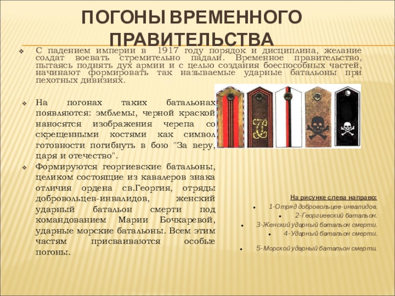 Слайд 11ПОГОНЫ ВРЕМЕННОГО ПРАВИТЕЛЬСТВА