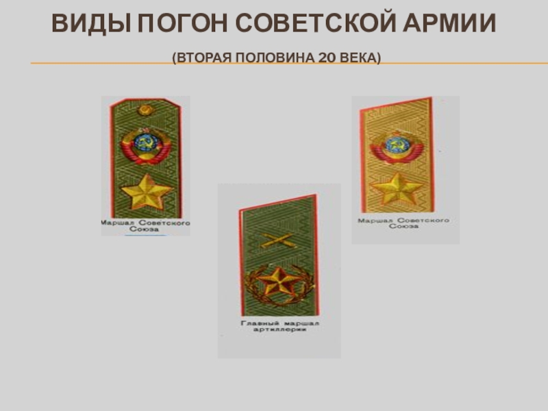 Слайд 17ВИДЫ ПОГОН СОВЕТСКОЙ АРМИИ
