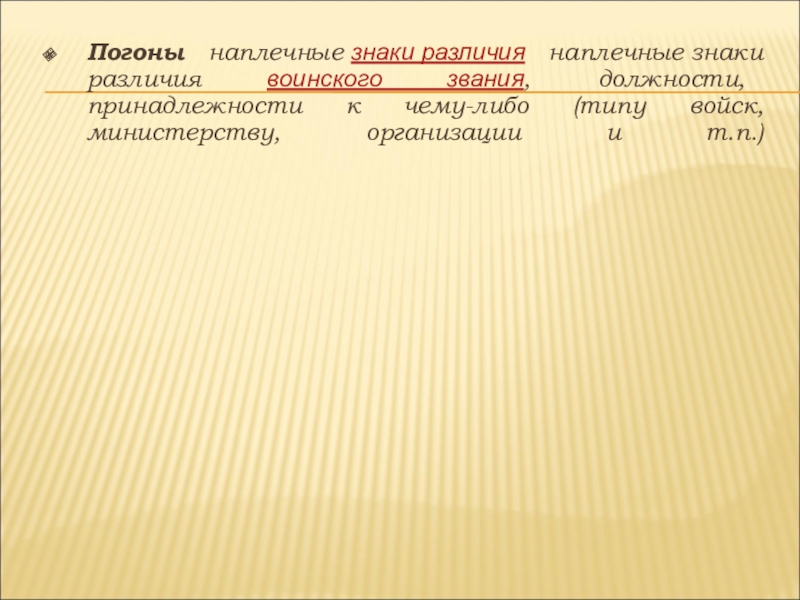 Слайд 20Погоны наплечные знаки различия наплечные знаки различия воинского звания, должности, принадлежности