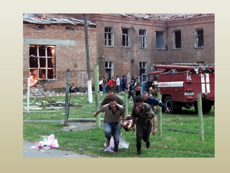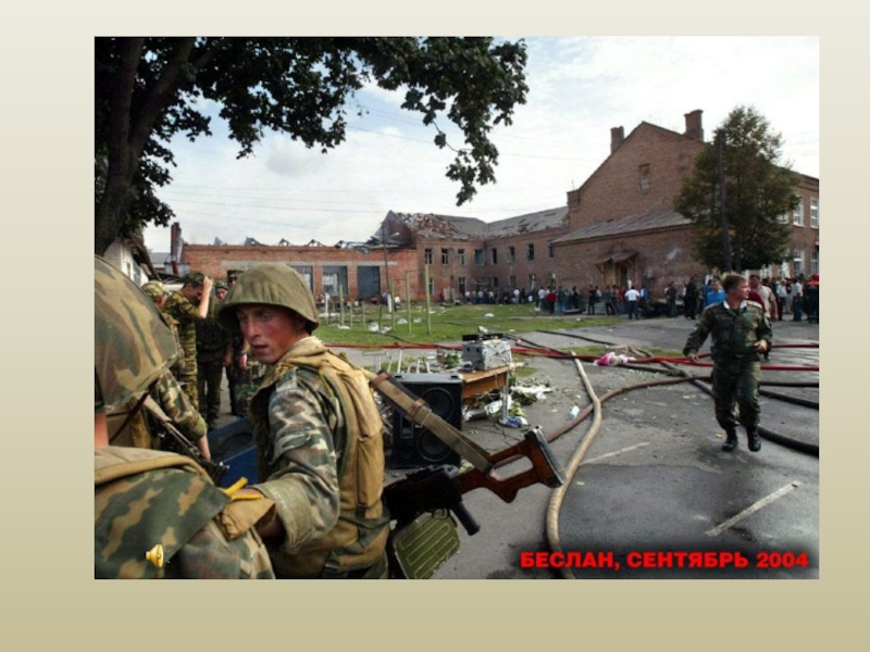 1 сентября 2004 года  Группа вооруженных боевиков в масках и бронежилетах приехала в Беслан на трех
