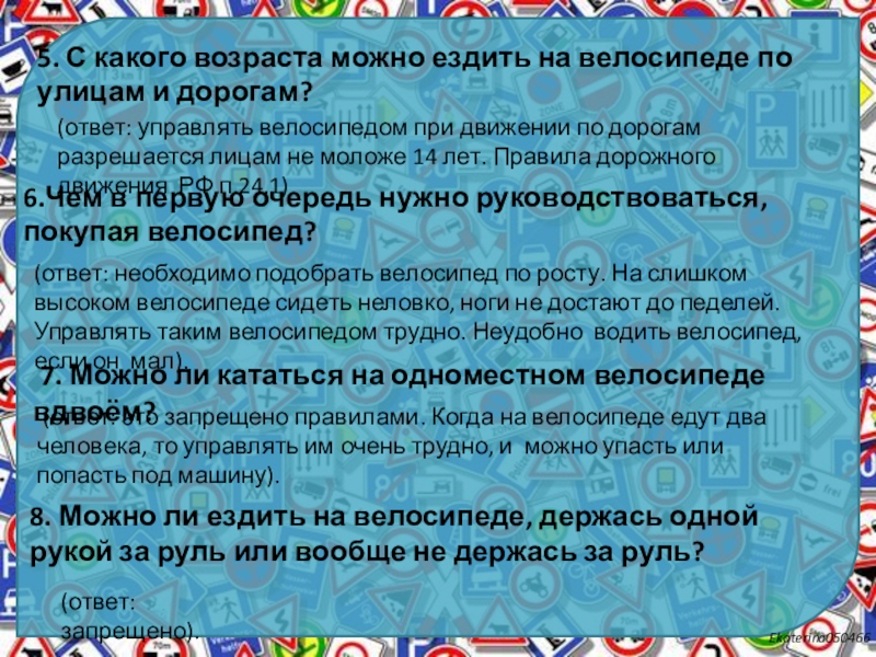 5. С какого возраста можно ездить на велосипеде по улицам и дорогам?