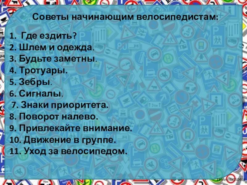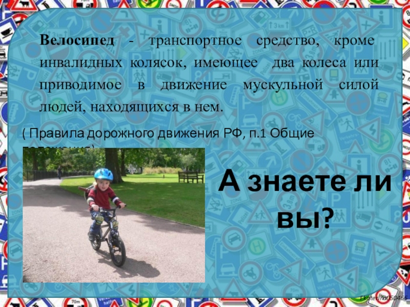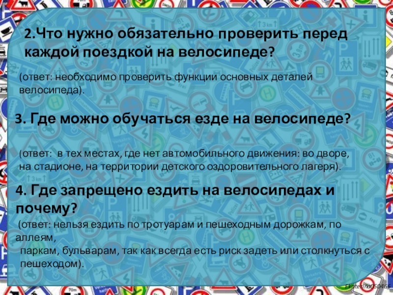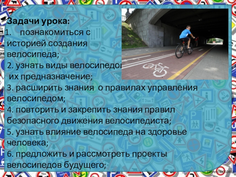Цель урока: закрепить знание правил безопасной езды на велосипеде по проезжей части, расширить представление о велосипеде, а также влияние велосипеда на здоровье человека.