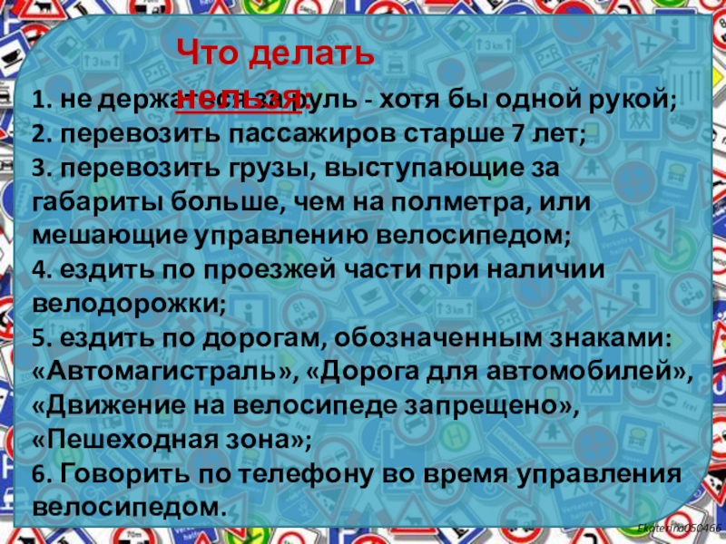 (ответ: это запрещено правилами. Когда на велосипеде едут два человека, то управлять им очень трудно, и можно упасть или попасть под машину).