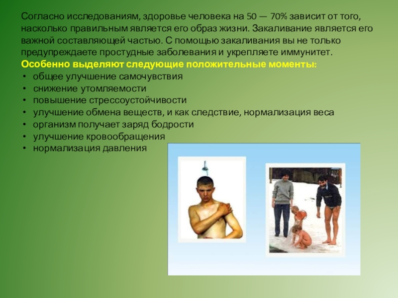 Слайд 8Большое значение для вашего здоровья и правильного развития имеет закаливание организма.