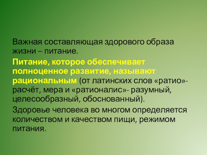 Слайд 13Важная составляющая здорового образа жизни – питание.