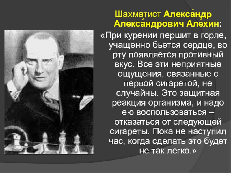 Слайд 8Шахматист Алекса́ндр Алекса́ндрович Але́хин: