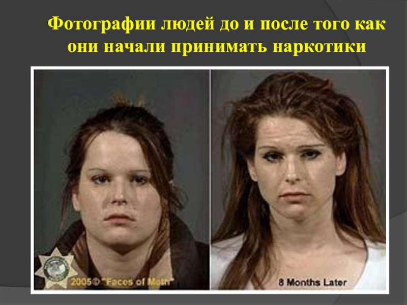 Слайд 18Фотографии людей до и после того как они начали принимать наркотики