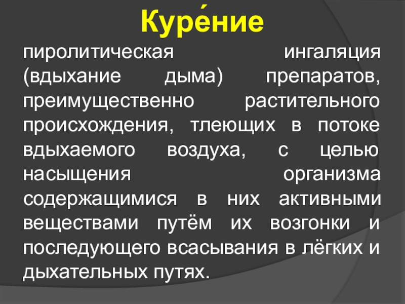 пиролитическая ингаляция (вдыхание дыма) препаратов, преимущественно растительного происхождения, тлеющих в