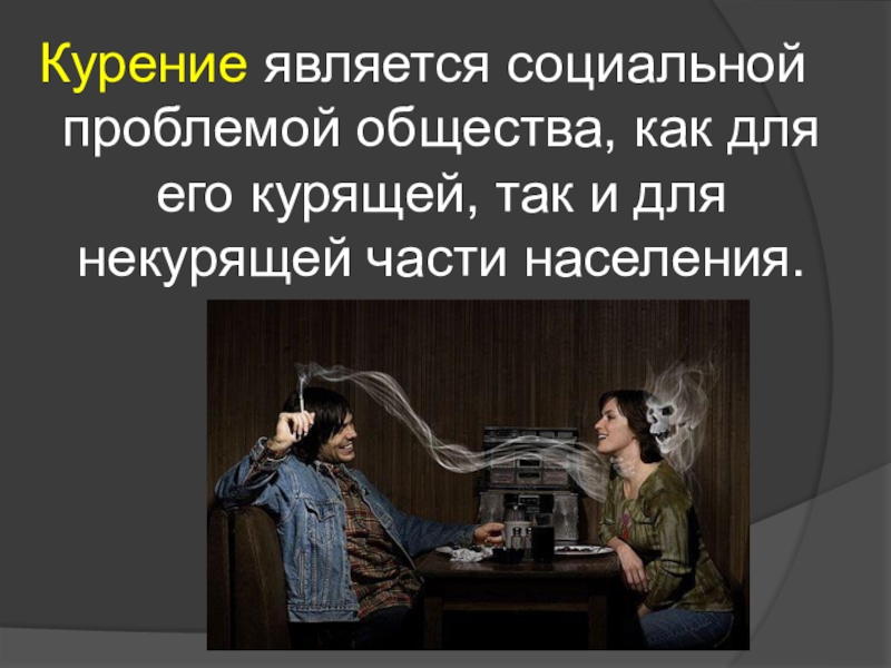 Слайд 4Курение является социальной проблемой общества, как для его курящей, так и