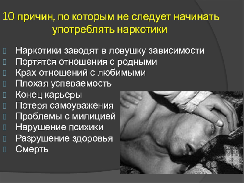 Слайд 2310 причин, по которым не следует начинать употреблять наркотики