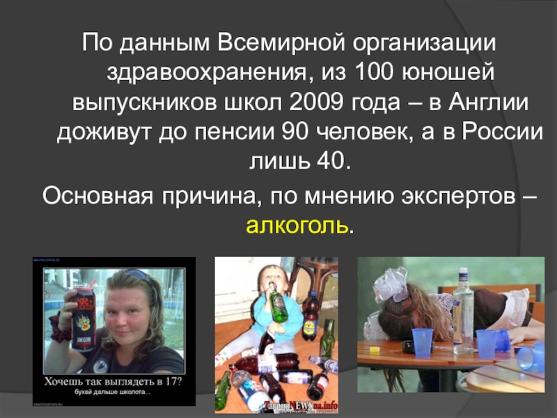 По данным Всемирной организации здравоохранения, из 100 юношей выпускников школ 2009