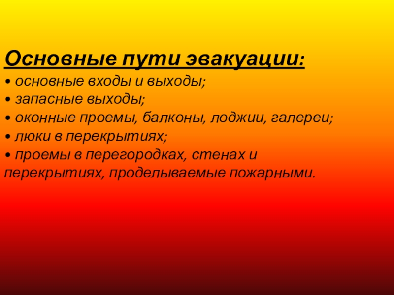 Слайд 18Основные пути эвакуации: