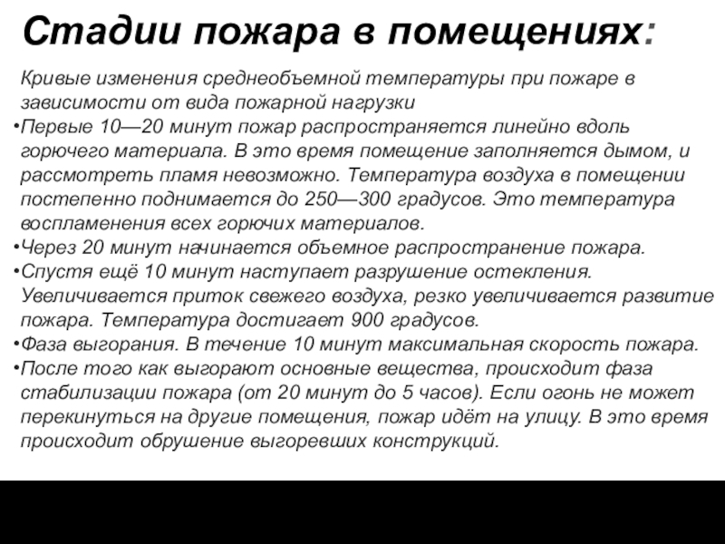 Слайд 7Стадии пожара в помещениях: