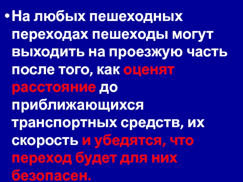 Слайд 11На любых пешеходных переходах пешеходы могут выходить на проезжую часть после