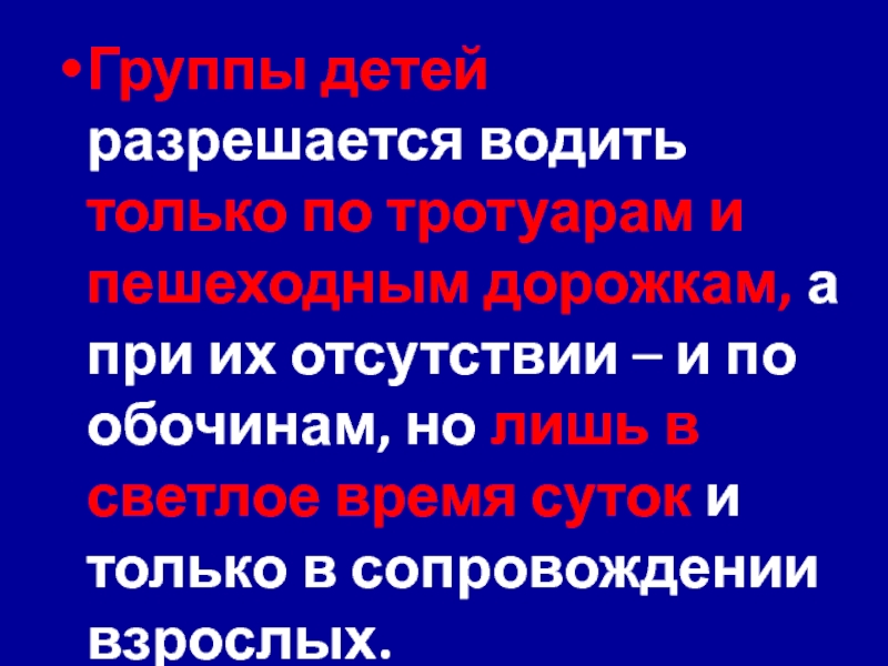 Группы детей разрешается водить только по тротуарам и пешеходным дорожкам, а при их отсутствии – и по