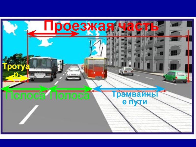 Проезжая частьПолосаПолосаТрамвайные путиТротуар
