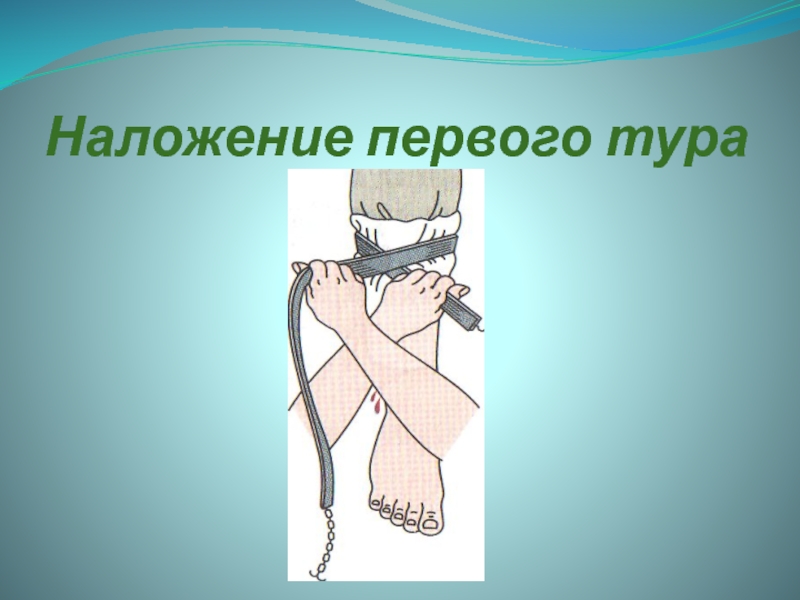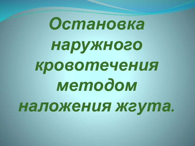 Слайд 1Остановка наружного кровотечения методом наложения жгута.