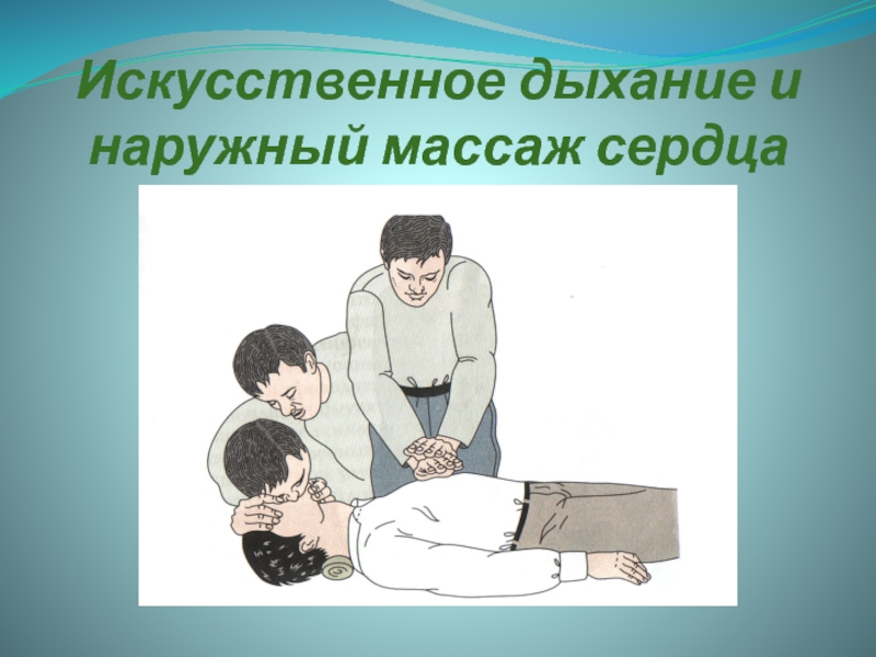 Слайд 10Искусственное дыхание и наружный массаж сердца