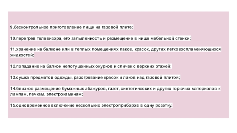 5.чистка одежды бензином, использование легковоспламеняющихся жидкостей для разжигания печки;