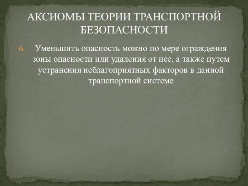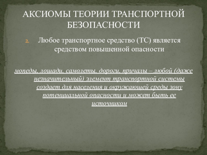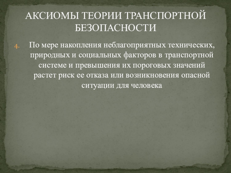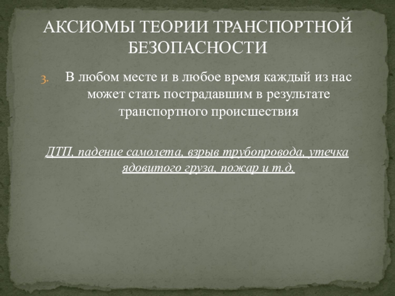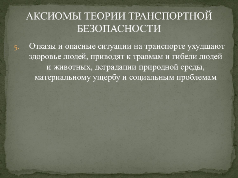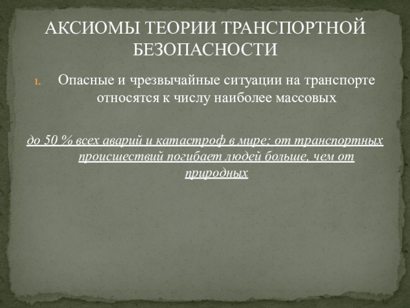 АКСИОМЫ ТЕОРИИ ТРАНСПОРТНОЙ БЕЗОПАСНОСТИ
