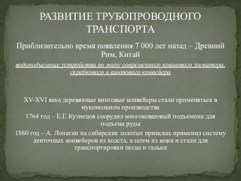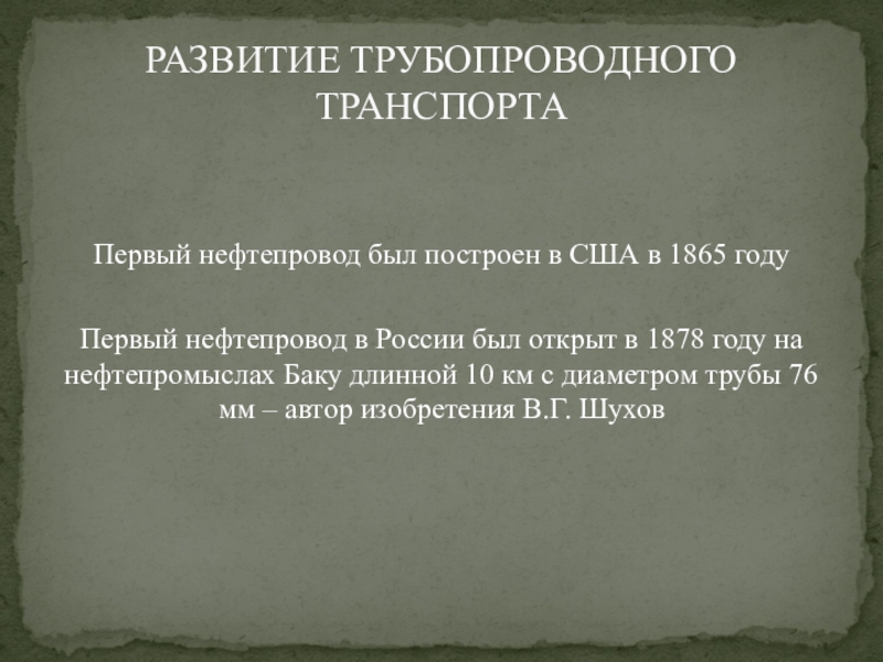 РАЗВИТИЕ ТРУБОПРОВОДНОГО ТРАНСПОРТА