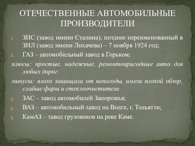 ОТЕЧЕСТВЕННЫЕ АВТОМОБИЛЬНЫЕ ПРОИЗВОДИТЕЛИ