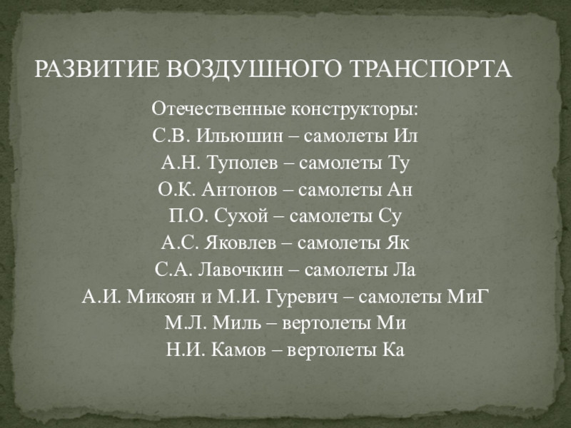 РАЗВИТИЕ ВОЗДУШНОГО ТРАНСПОРТА