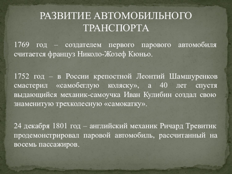 ИСТОРИЯ РАЗВИТИЯ ТРАНСПОРТА