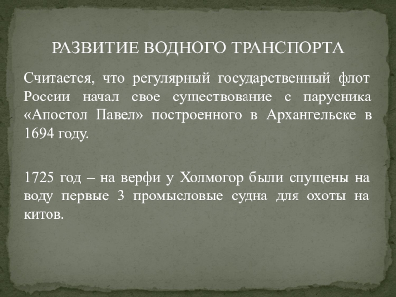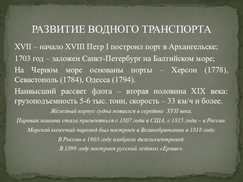 РАЗВИТИЕ ВОДНОГО ТРАНСПОРТА