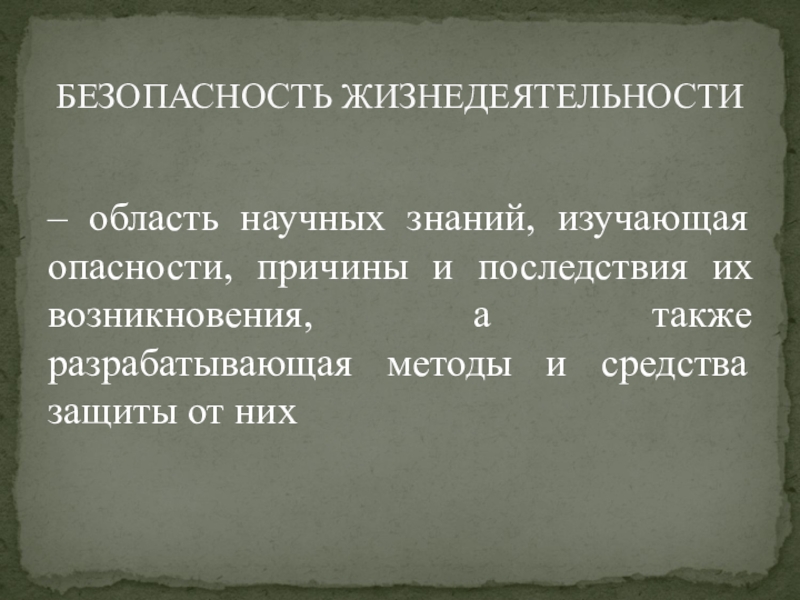 БЕЗОПАСНОСТЬ ЖИЗНЕДЕЯТЕЛЬНОСТИ