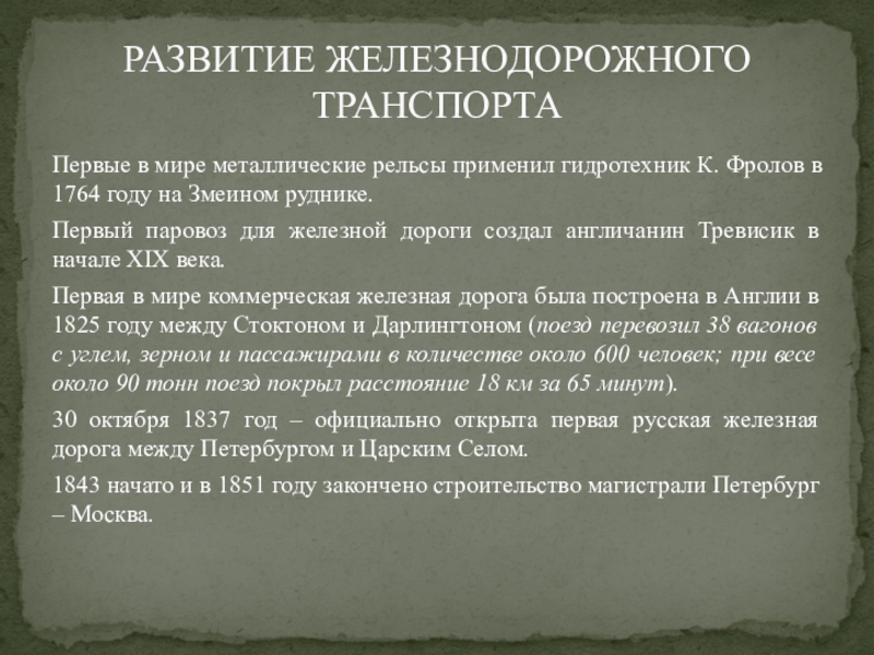 РАЗВИТИЕ ЖЕЛЕЗНОДОРОЖНОГО ТРАНСПОРТА