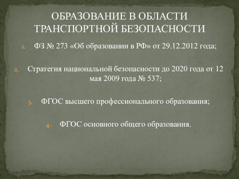 ОБРАЗОВАНИЕ В ОБЛАСТИ ТРАНСПОРТНОЙ БЕЗОПАСНОСТИ