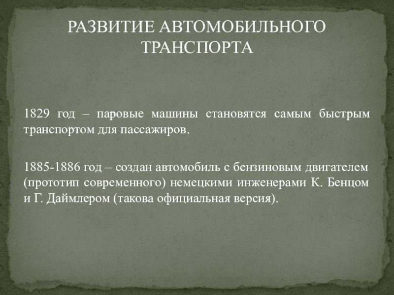 РАЗВИТИЕ АВТОМОБИЛЬНОГО ТРАНСПОРТА