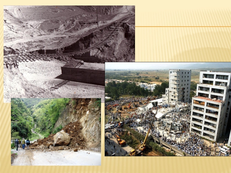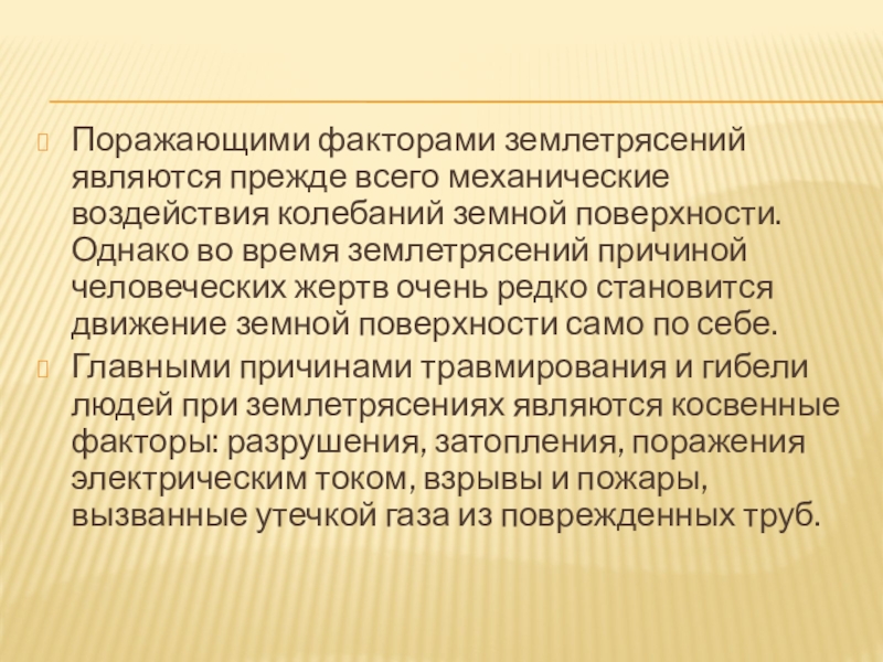 Слайд 15Поражающими факторами землетрясений являются прежде всего механические воздействия колебаний земной поверхности.