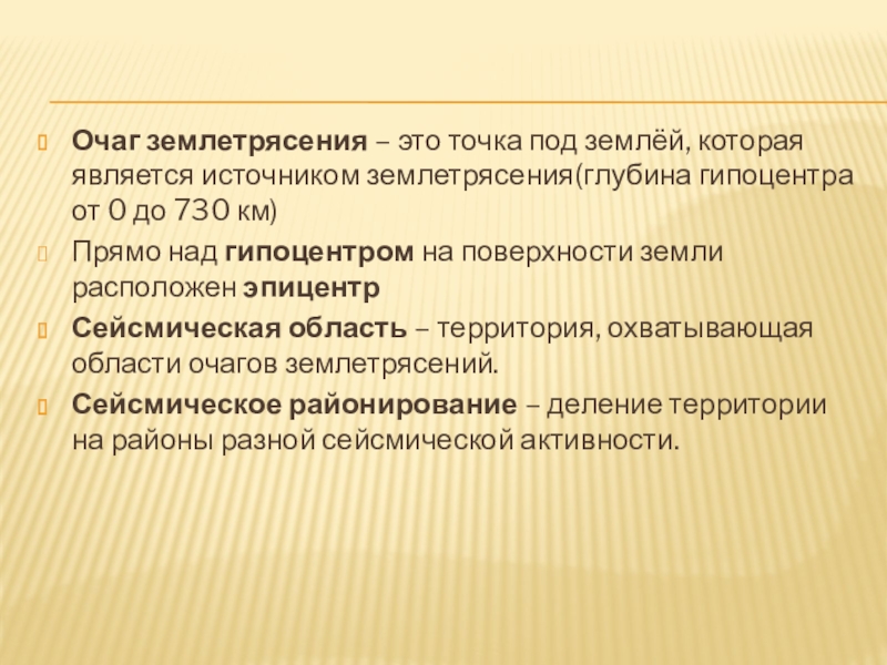 Слайд 12Очаг землетрясения – это точка под землёй, которая является источником землетрясения(глубина