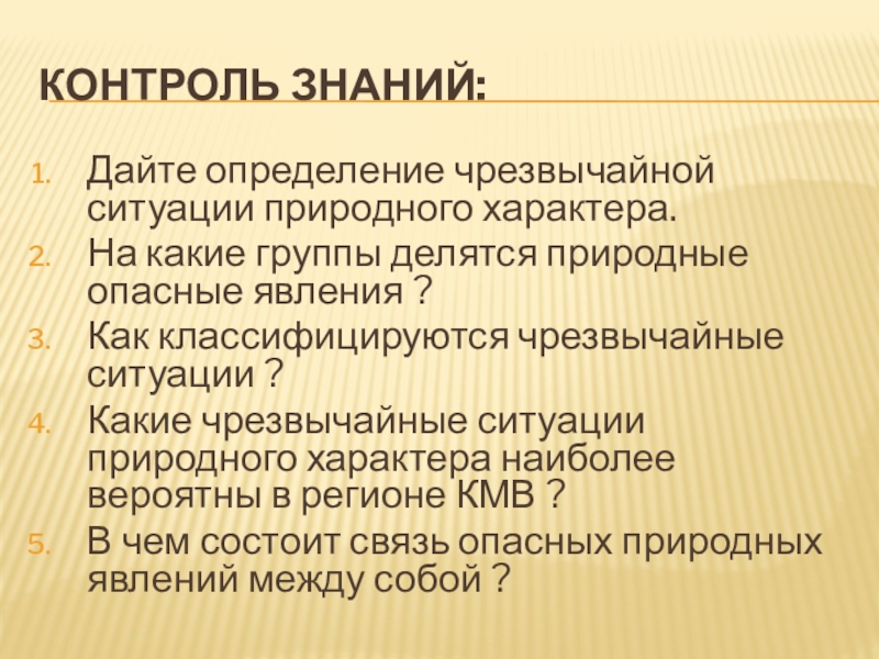 Какие чрезвычайные ситуации природного характера наиболее вероятны в регионе КМВ ?