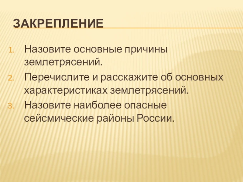 Перечислите и расскажите об основных характеристиках землетрясений.
