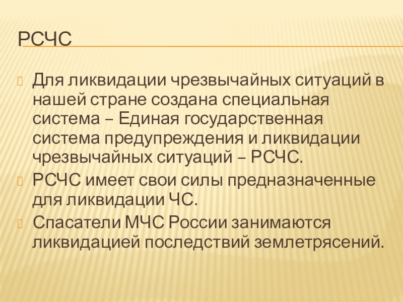 Единая государственная система предупреждения и ликвидации чрезвычайных ситуаций – РСЧС.
