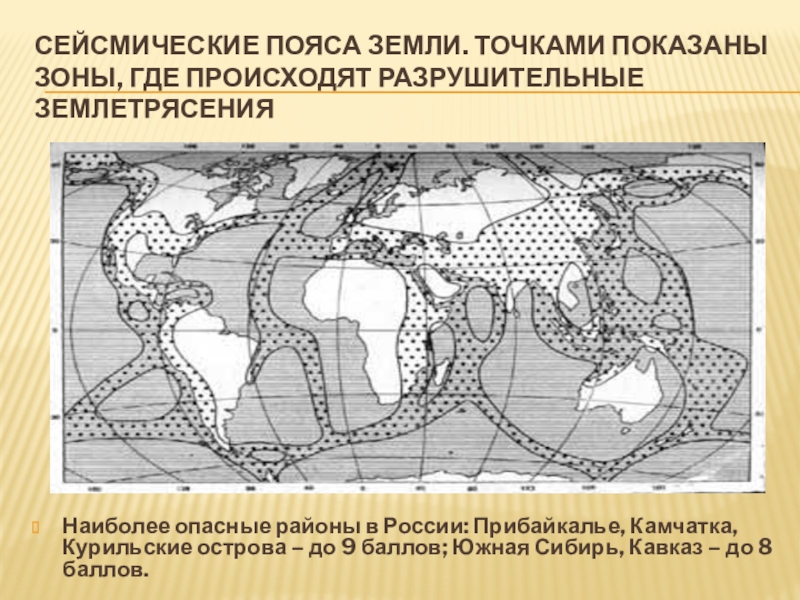 районы в России: Прибайкалье, Камчатка, Курильские острова – до 9 баллов; Южная Сибирь, Кавказ – до 8 баллов.