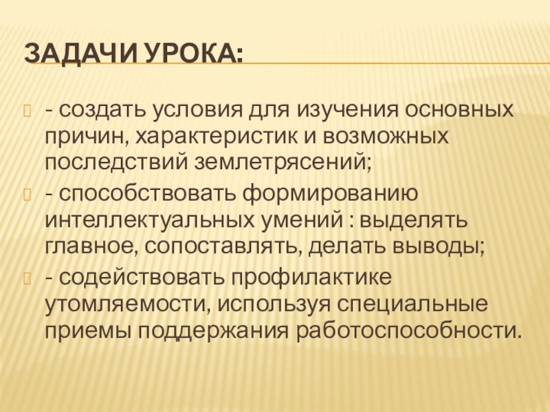 - содействовать профилактике утомляемости, используя специальные приемы поддержания работоспособности.