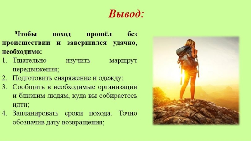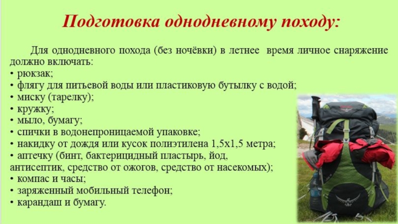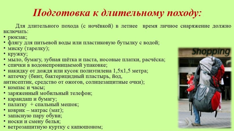 Презентация, доклад к уроку, на тему:Как подготовиться к походу, чтобы избежать экстремальных ситуаций (6 класс)