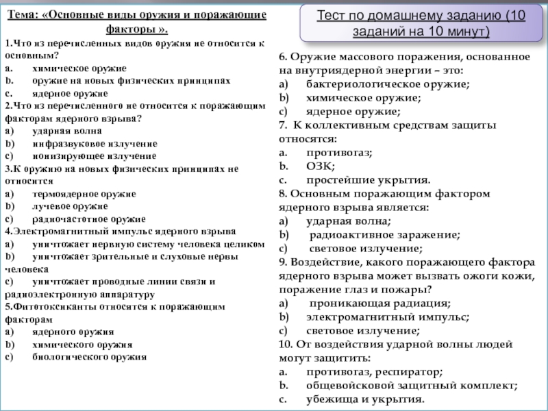 Тест по домашнему заданию (10 заданий на 10 минут)