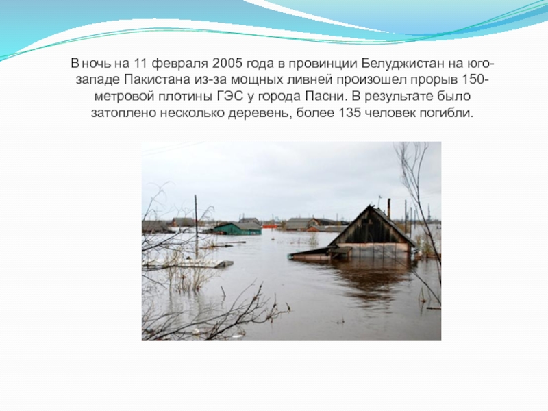 Слайд 24В ночь на 11 февраля 2005 года в провинции Белуджистан на юго-западе