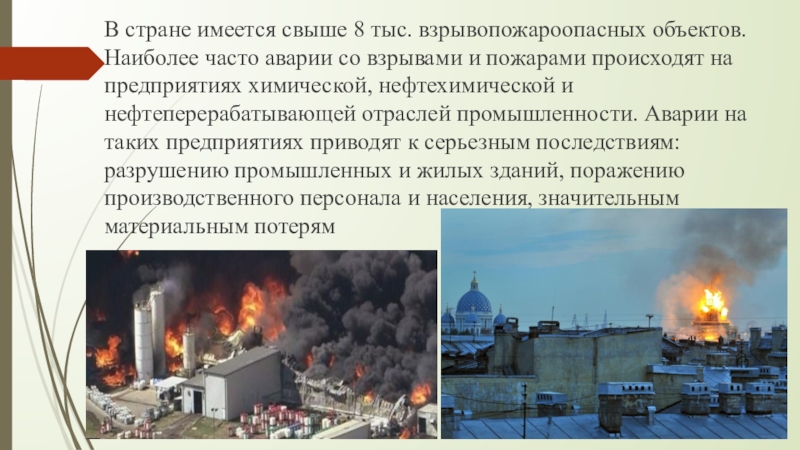 Слайд 7В стране имеется свыше 8 тыс. взрывопожароопасных объектов. Наиболее часто аварии со