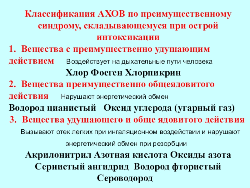 Слайд 5Классификация АХОВ: