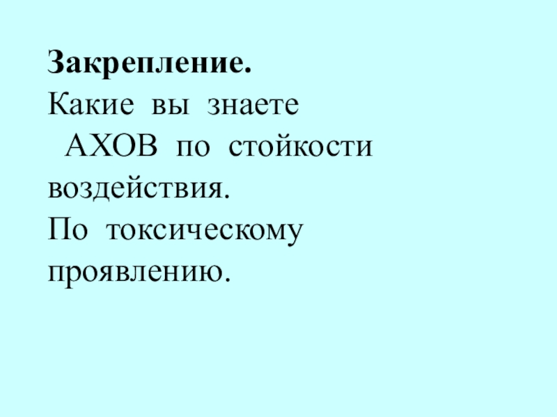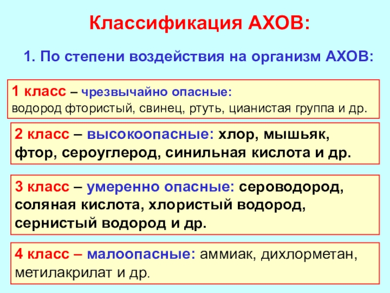 1. По степени воздействия на организм АХОВ: