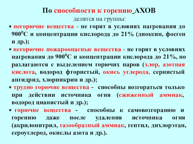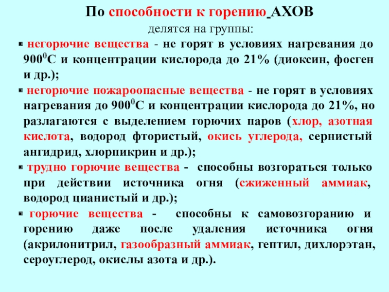 Слайд 13По способности к горению АХОВ