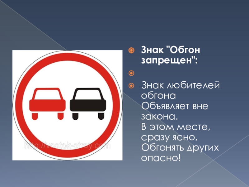 Слайд 9Знак "Обгон запрещен":