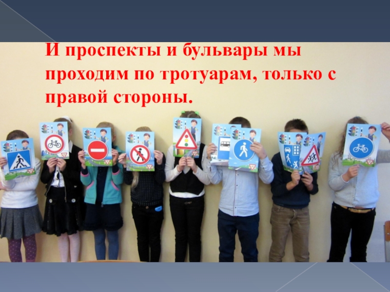 Слайд 74И проспекты и бульвары мы проходим по тротуарам, только с правой