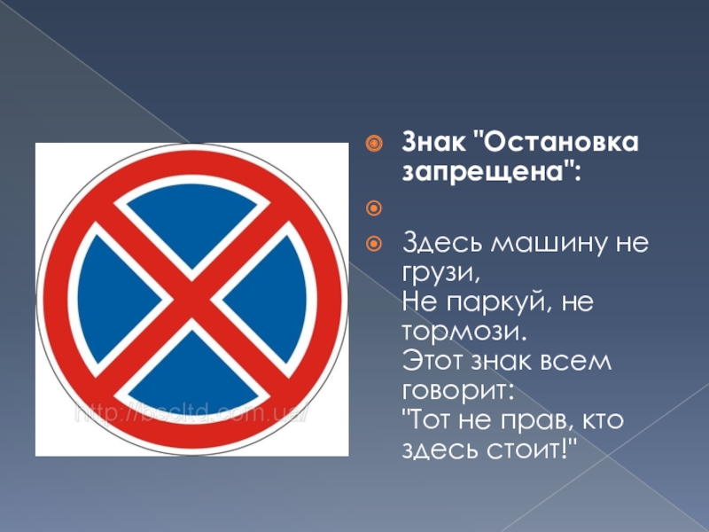 Слайд 16Знак "Остановка запрещена":